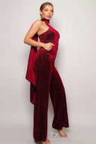 ارتقِ بخزانتك مع "جمبسوت المخمل اللامع". يتميز بتصميم بدون أكمام وكتف واحد، وياقة مائلة، وتفصيل وشاح ملفوف لإضافة لمسة أنيقة، وصدر محدد بخياطة، وجيب جانبي أمامي وظهر مفتوح. استمتع بالقصة التي تبرز الجسم مع فتحة أوسع نحو الأسفل، مما يوفر الراحة دون التضحية بالأناقة.