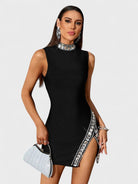 اجذب الأنظار بهذا الفستان الماكسي الرائع ذو الكتفين المكشوفين! يتميز بتطريزات متقنة من أحجار الراين لإضفاء لمسة من البريق، وتصميم ضيق يشبه الضمادة يبرز منحنياتك، هذا الفستان مثالي لإحداث تأثير قوي. سواء كان حدثًا مسائيًا فاخرًا أو مناسبة خاصة، فإن هذه القطعة اللافتة هي خيارك الأمثل للأناقة والأسلوب الفائق.