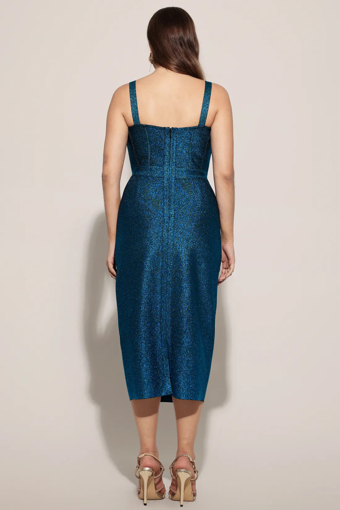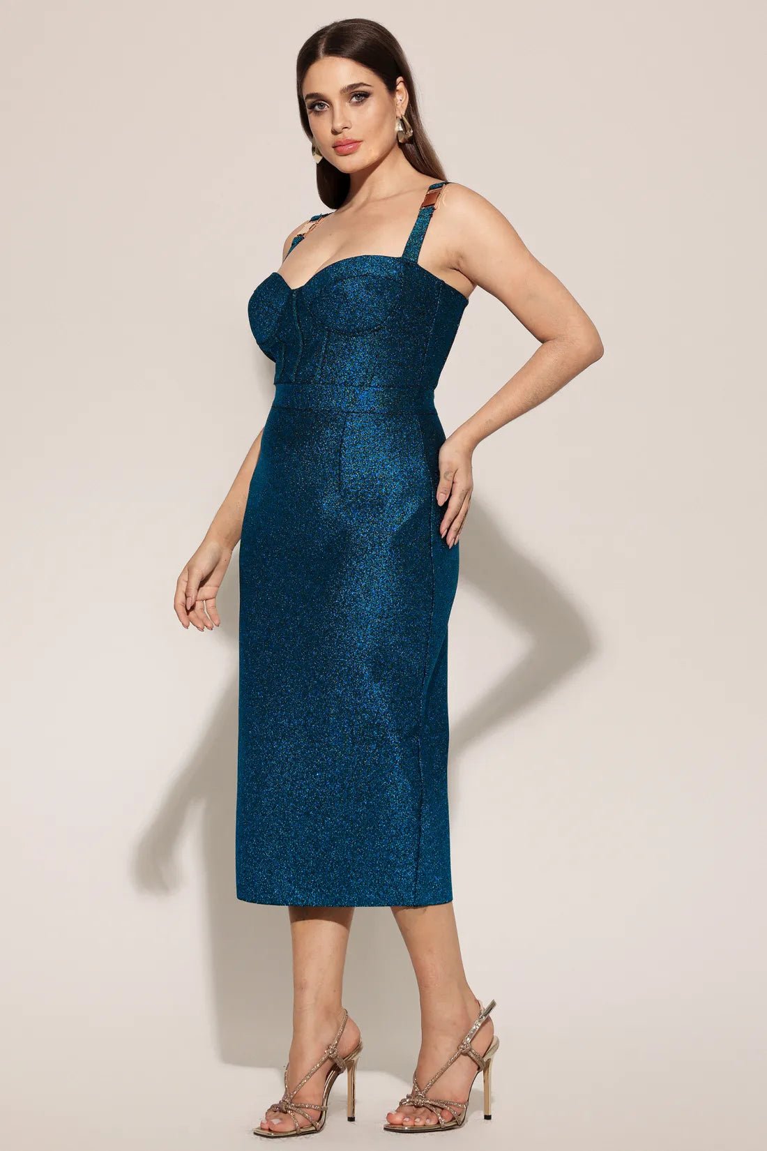 Plus Aura Sleeveless Blue Metallic Bandage Midi Dress