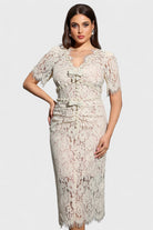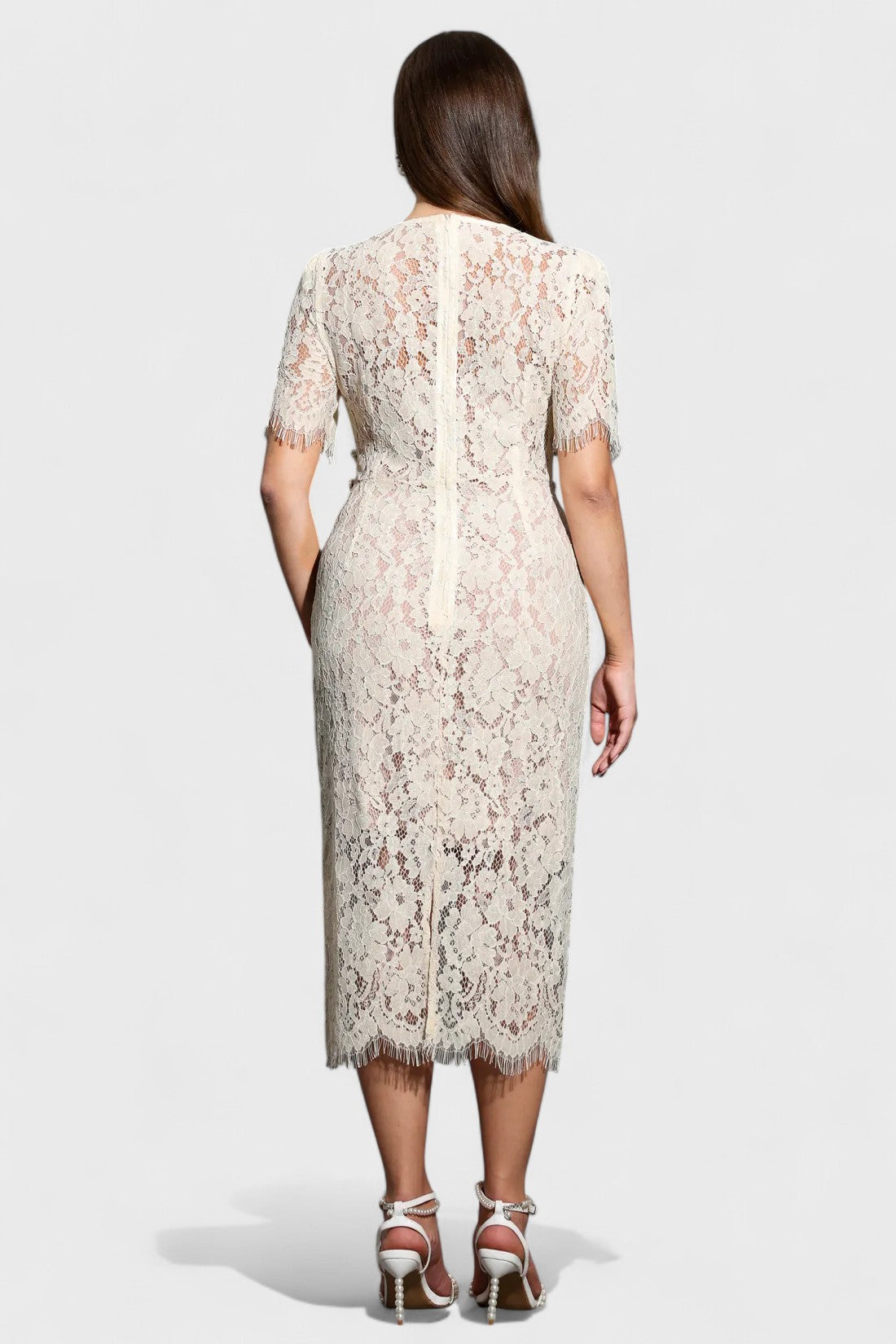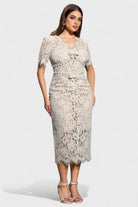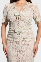 Plus Eloda Short Sleeve Bow Lace Midi Dress – Ivory