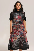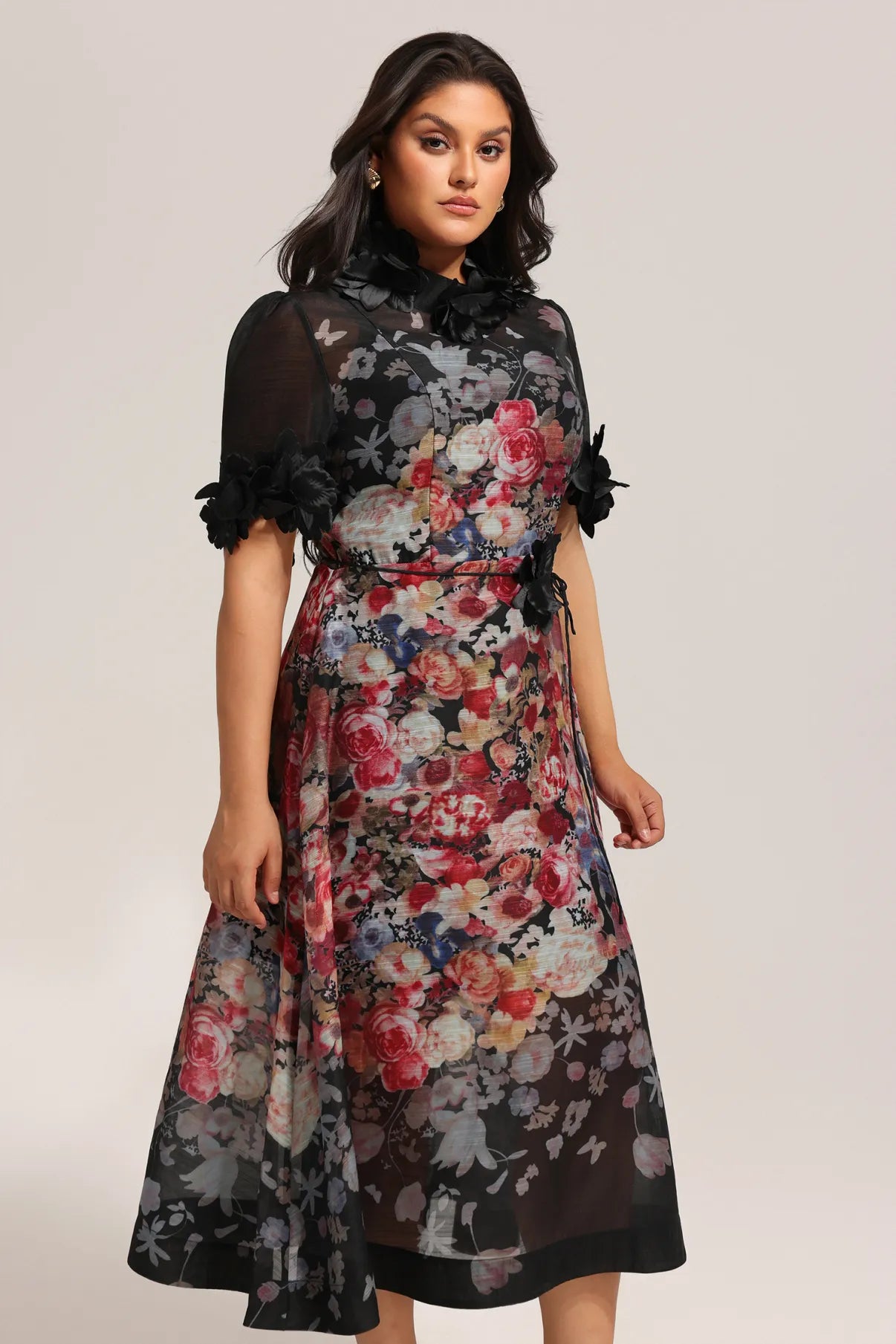 Plus Mariela Sheer Short Sleeve Floral Print Midi Dress