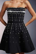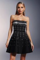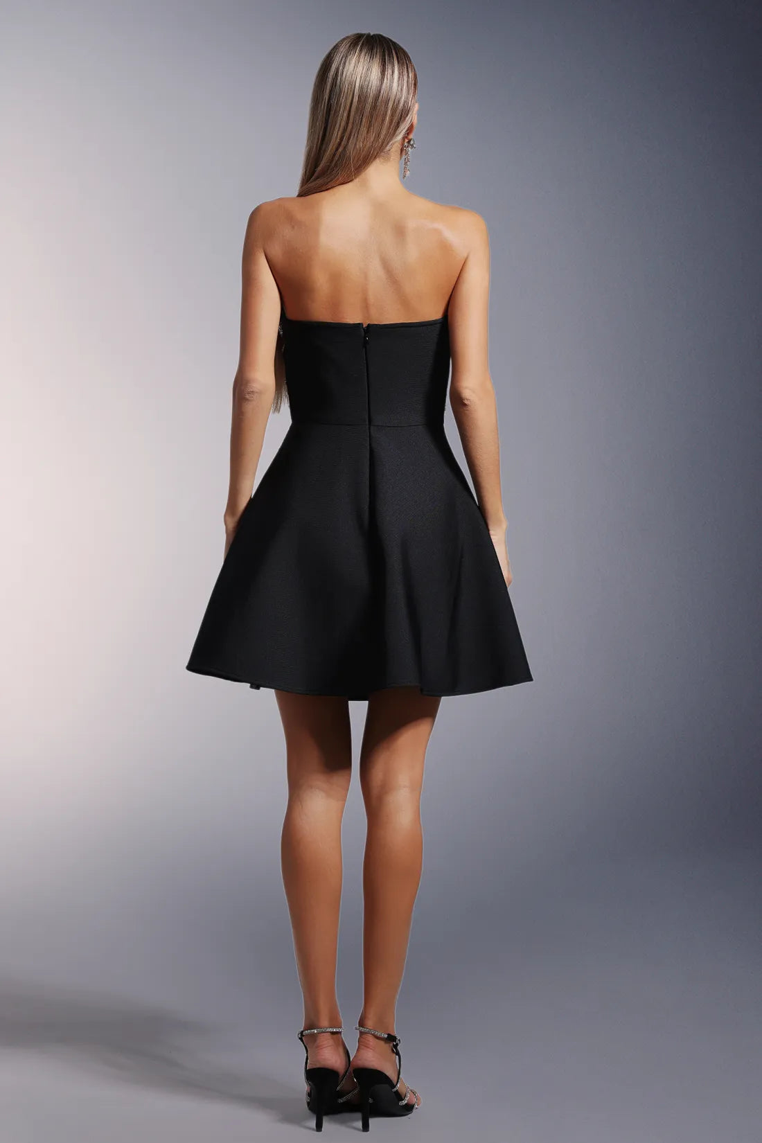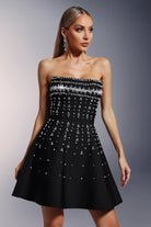 Vestido Mini Negro Mai Sin Tirantes con Pedrería