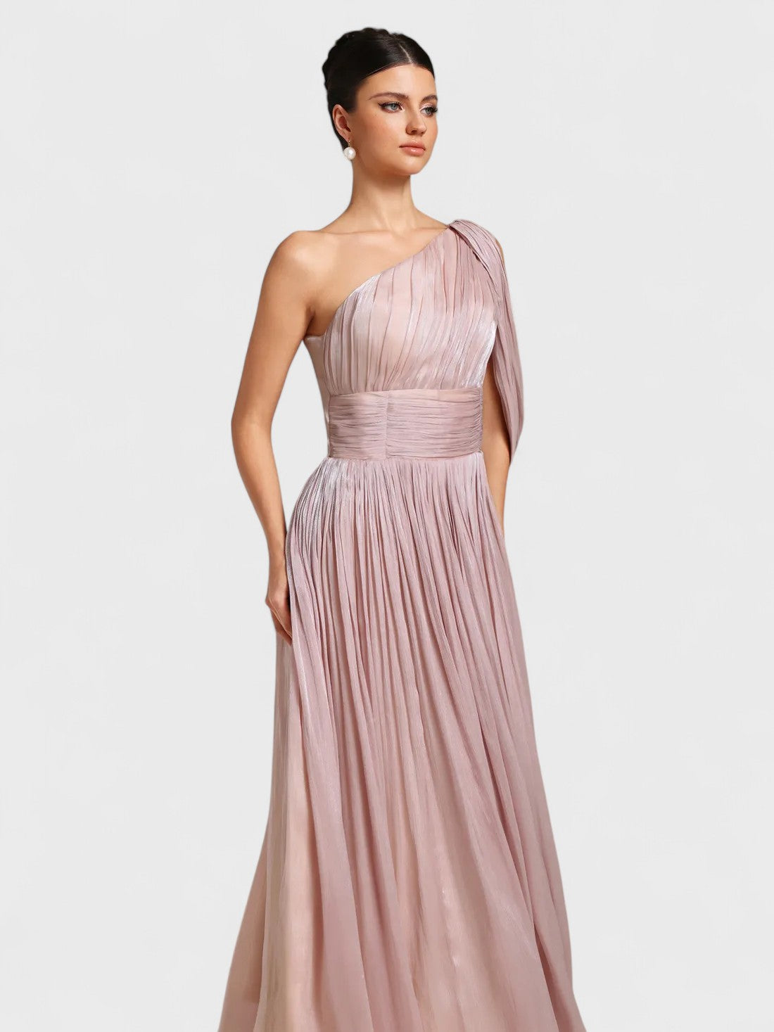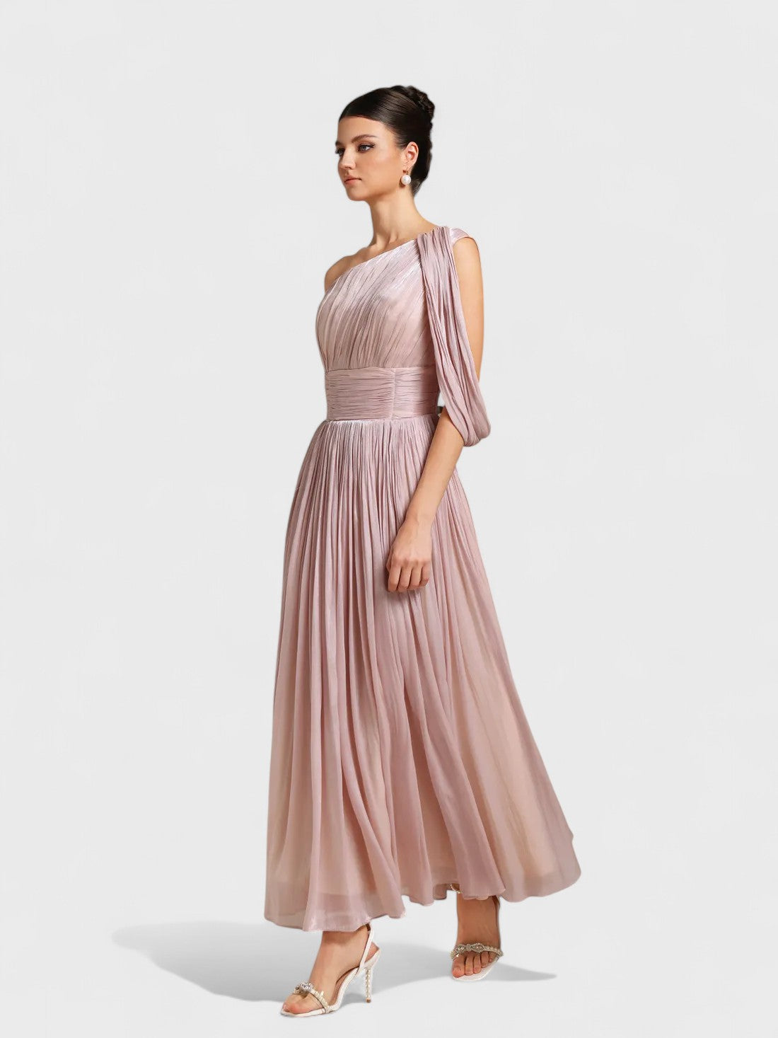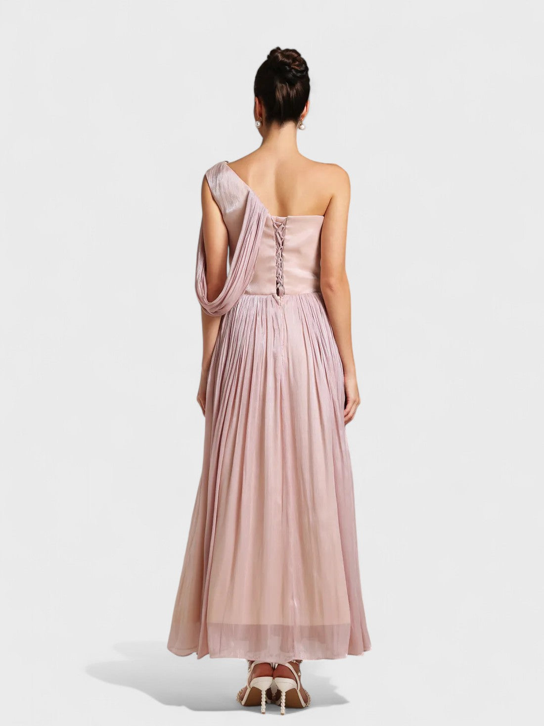 • Diseño: Tirantes finos, detalle de costura estilo corsé, adornos de piedras preciosas en el busto, cintura y tirantes, falda plisada suave