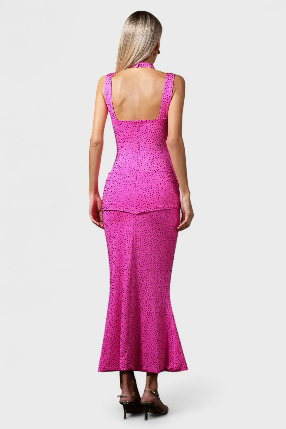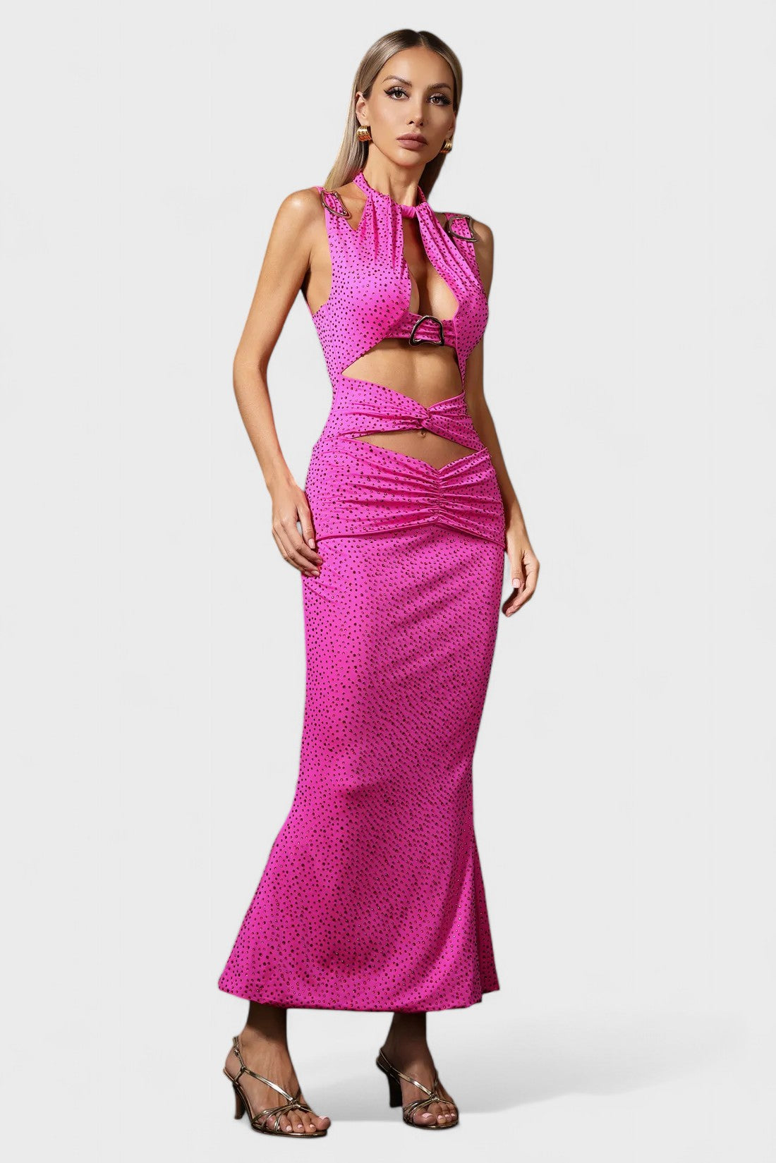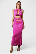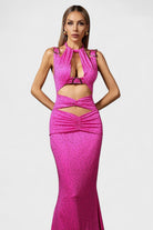 Deslumbra en tu próximo evento con este vestido midi fruncido de manga larga y escote off-the-shoulder, una pieza espectacular que irradia glamour y sofisticación. Este vestido está hecho de una tela rosa brillante y está diseñado para cautivar bajo cualquier luz. Un escote favorecedor que enmarca tus hombros hermosamente, añadiendo un toque de encanto atemporal. Elegantes y refinadas, las mangas largas ajustadas ofrecen el equilibrio perfecto entre cobertura y estilo. El fruncido cuidadosamente diseñado acentúa tus curvas, creando una silueta favorecedora con textura y encanto adicionales. Una atrevida abertura alta en el muslo aporta dramatismo y movimiento al look.