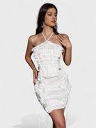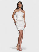Cubierto de deslumbrantes lentejuelas verdes, este vestido presenta un elegante fruncido que contornea maravillosamente tu figura y una atrevida abertura alta lateral para mayor atractivo. El elegante detalle de la espalda con lazo añade un toque de sofisticación mientras asegura el ajuste perfecto. Ya sea una gala, un evento nocturno o una ocasión especial, este vestido promete cautivar y dejar una impresión duradera.