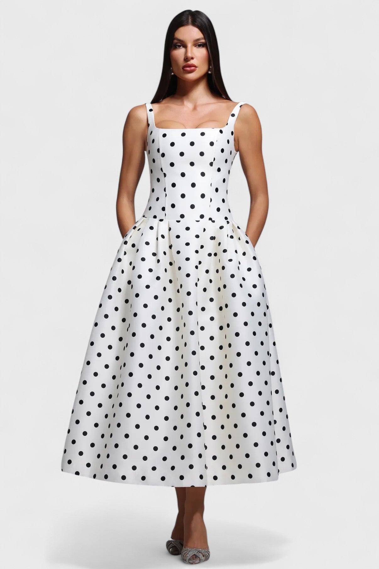 • Estadísticas del modelo: Altura – 68.9" / 175 cm | Busto – 36.6" / 93 cm | Cintura – 25.5" / 65 cm | Caderas – 36.6" / 93 cm