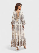 Vestido Maxi Lila de Manga Larga con Estampado de Piedras Brillantes