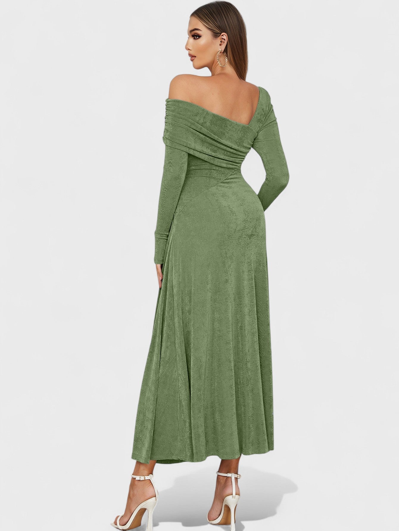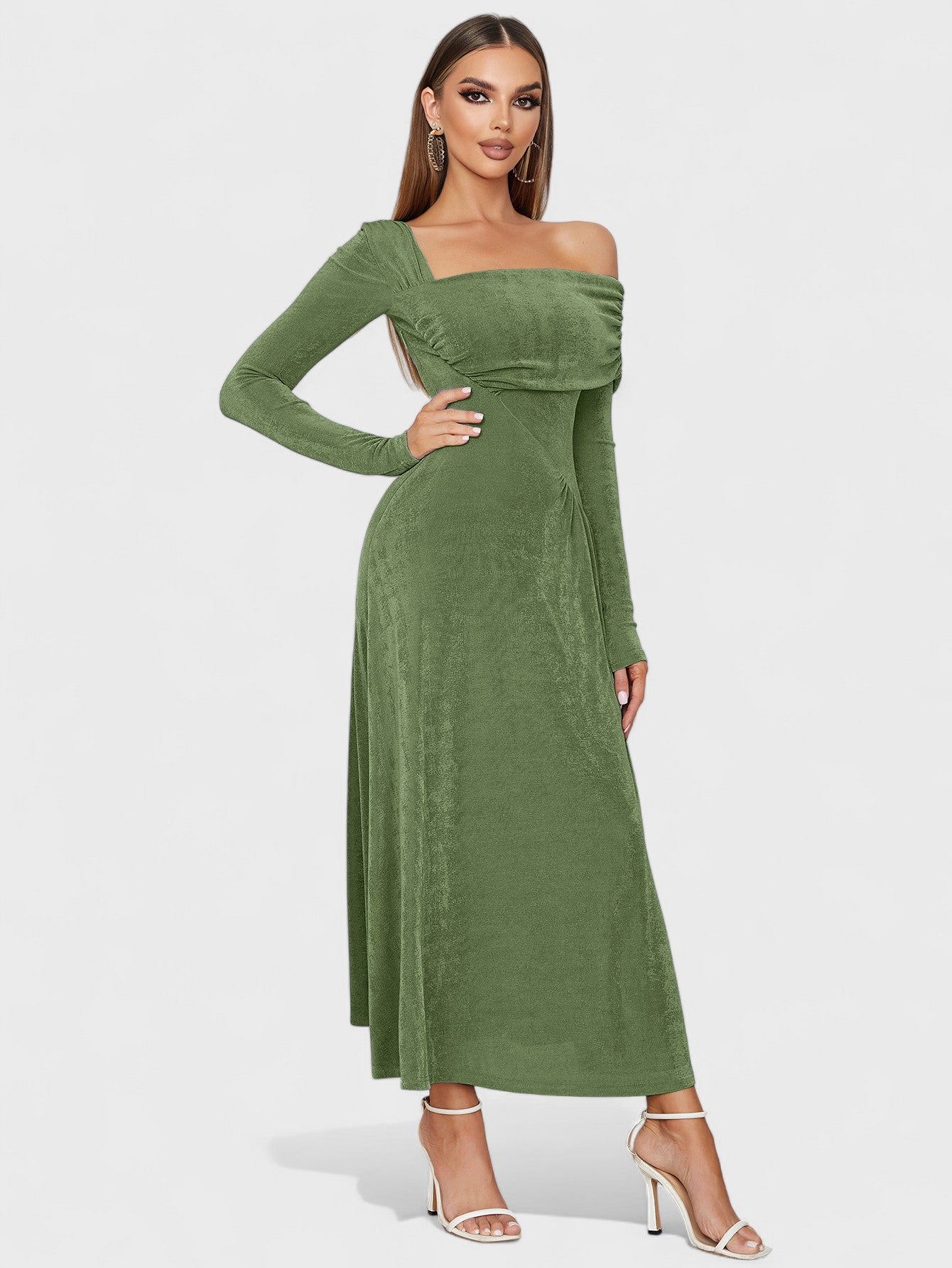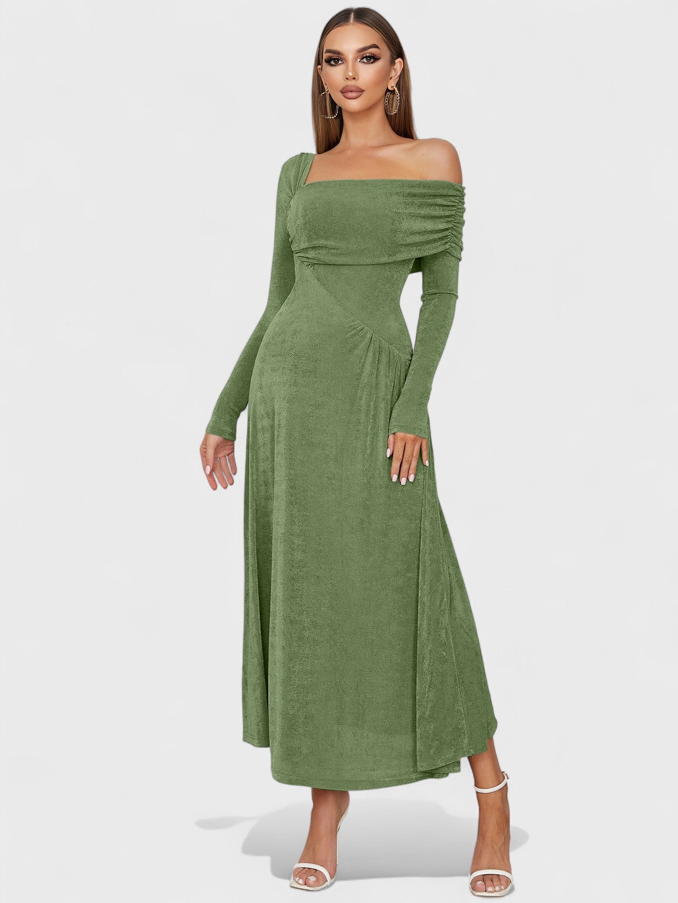 Jaicee Off-Shoulder Long Sleeve Maxi Dress - Olive Green