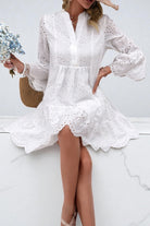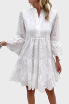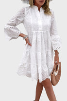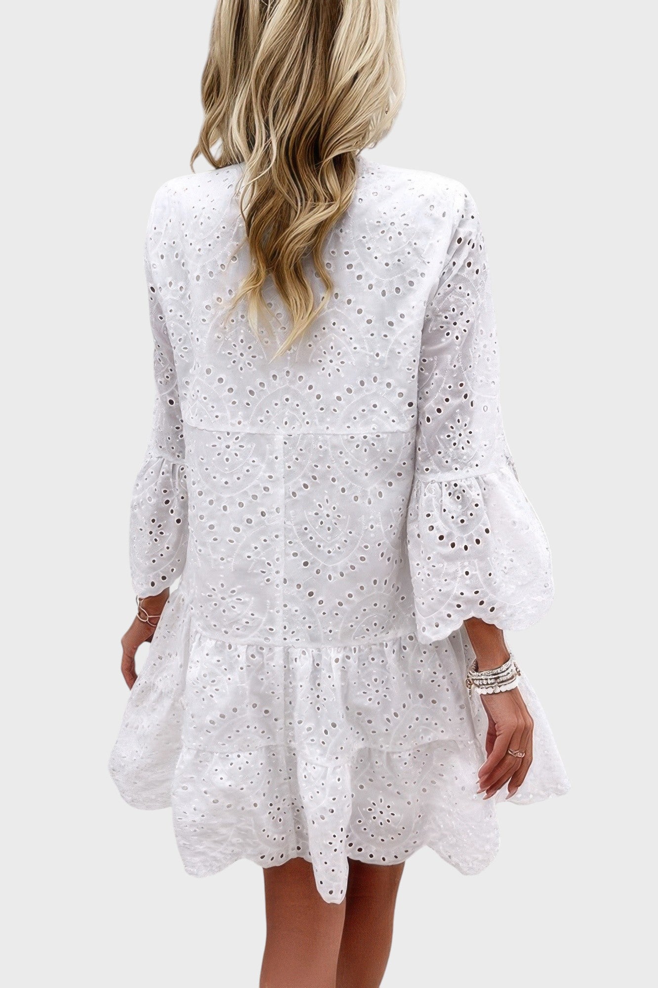 Lila V-Neck White Eyelet Flared Bell Sleeve Mini Dress