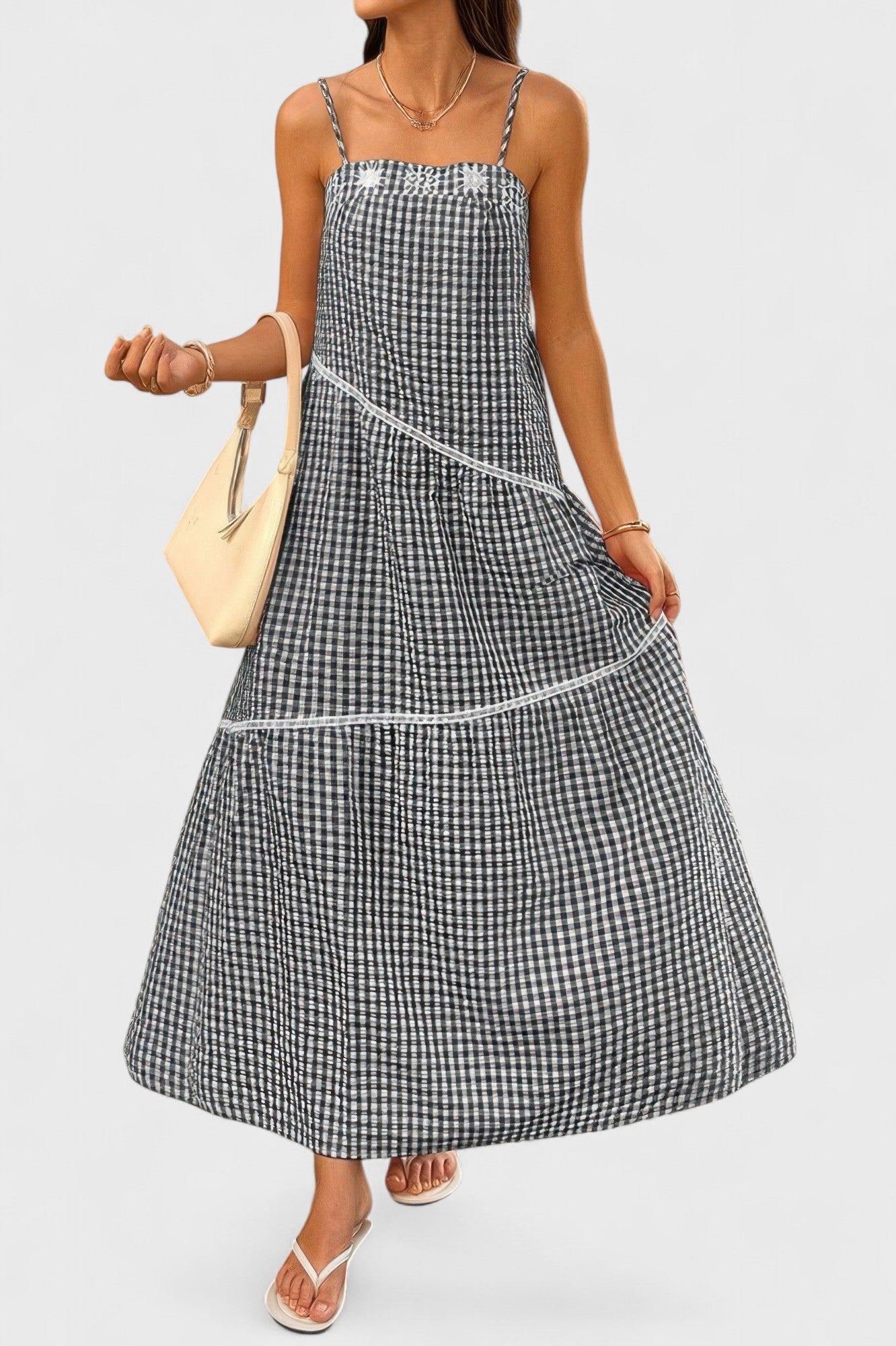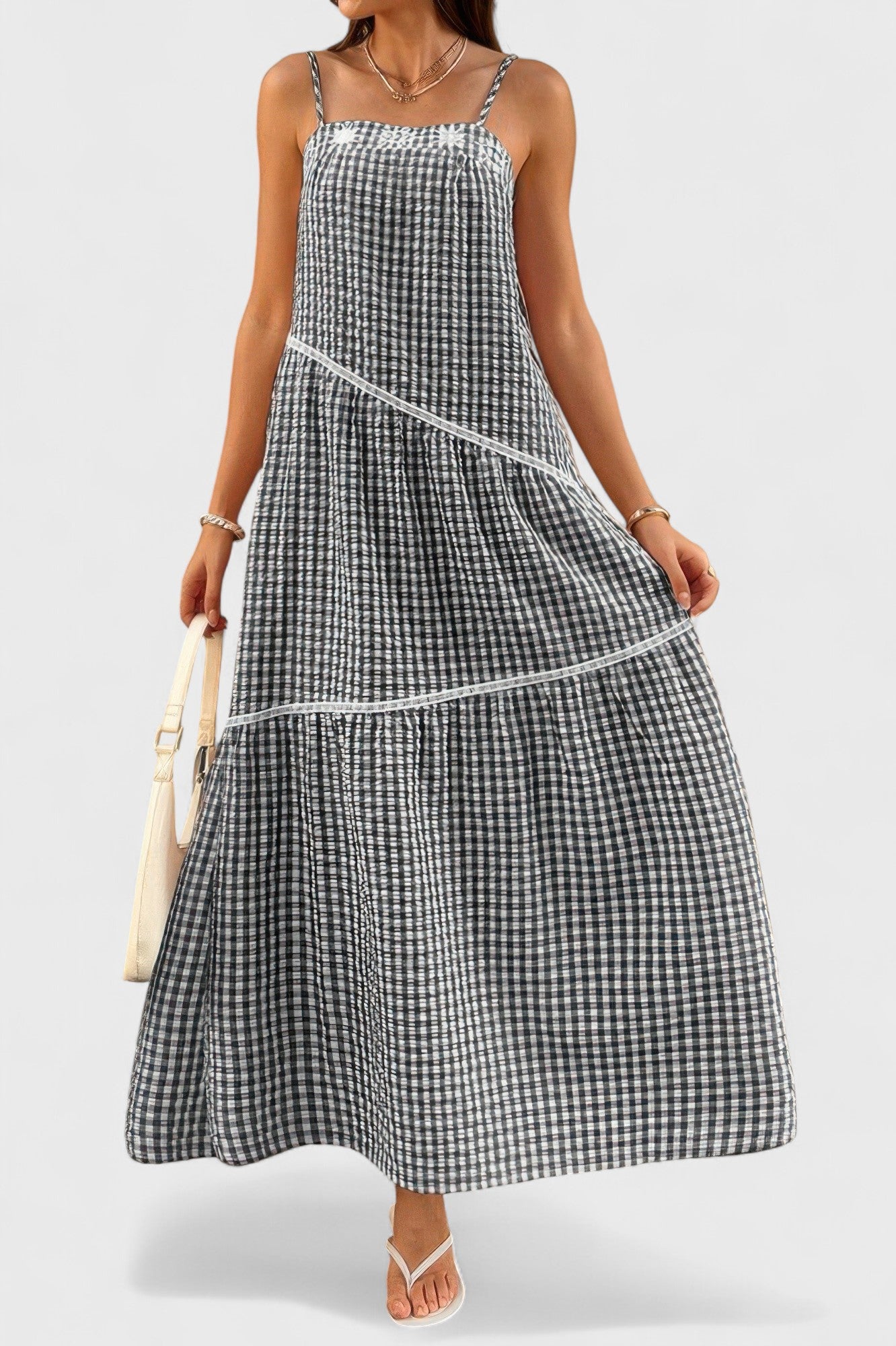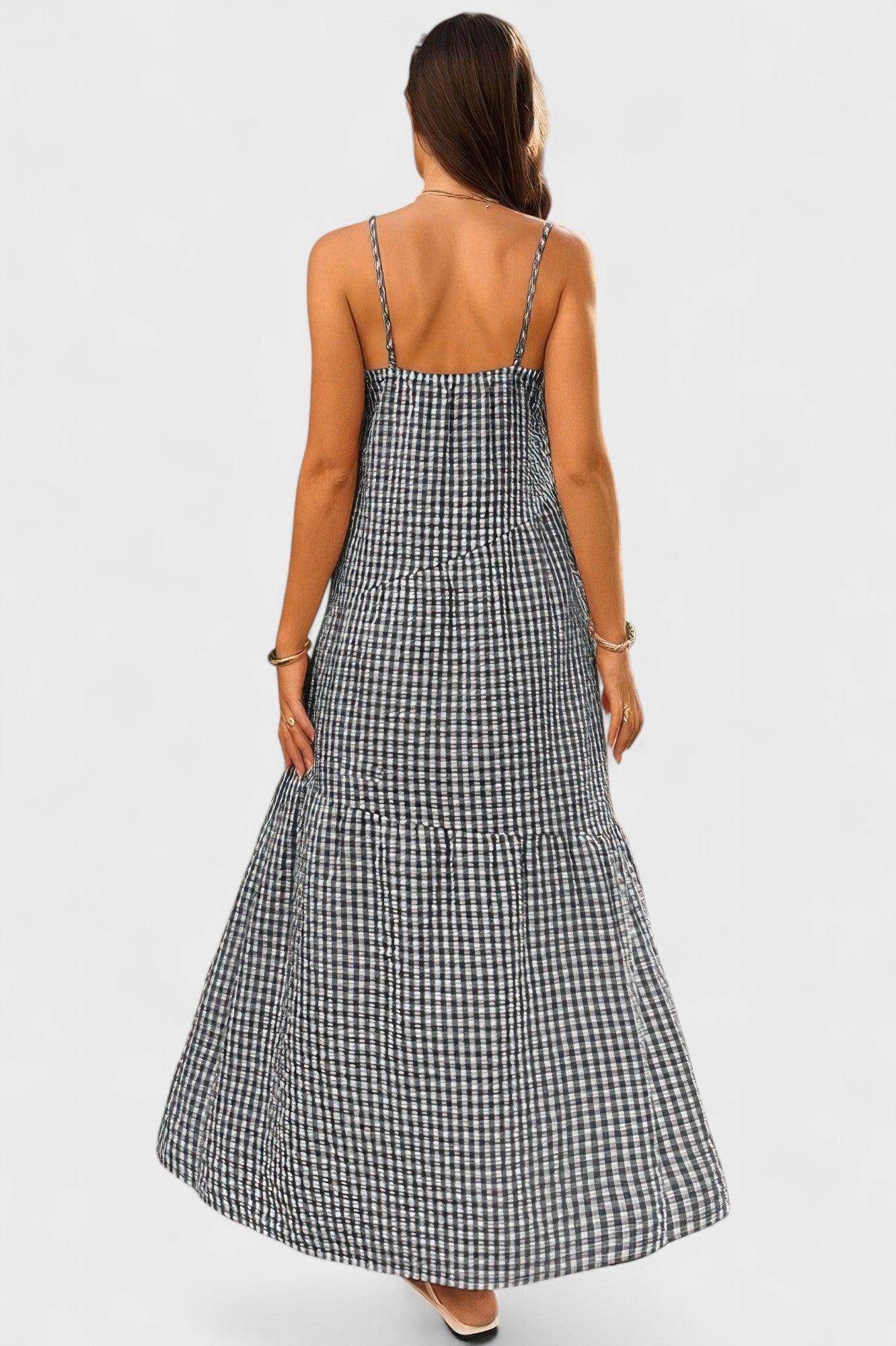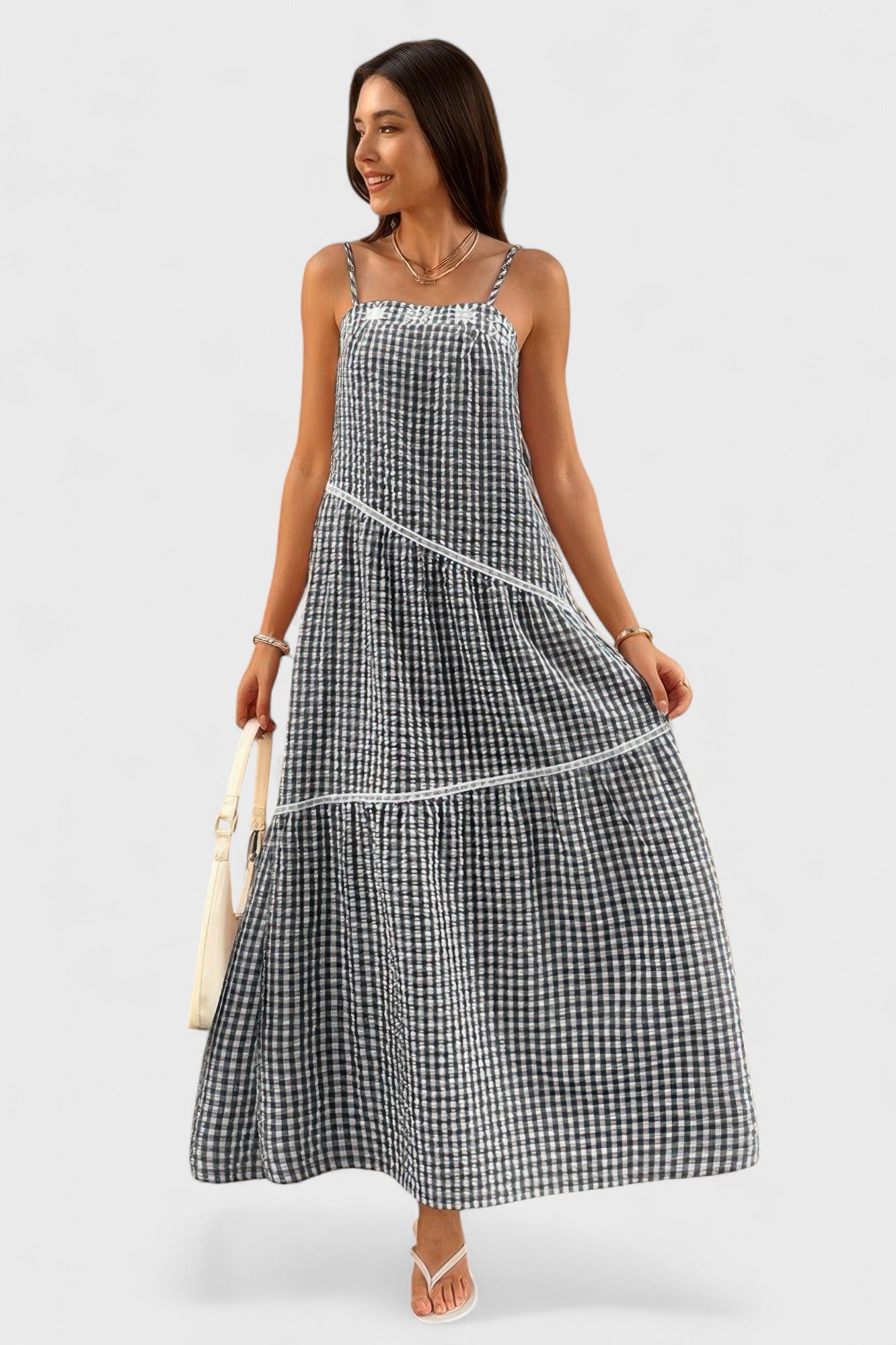 Amelia Sleeveless Gingham A-Line Tiered Maxi Dress