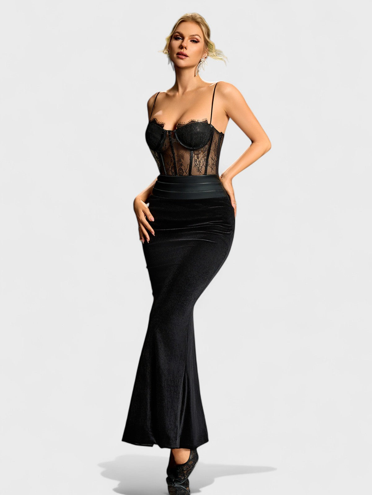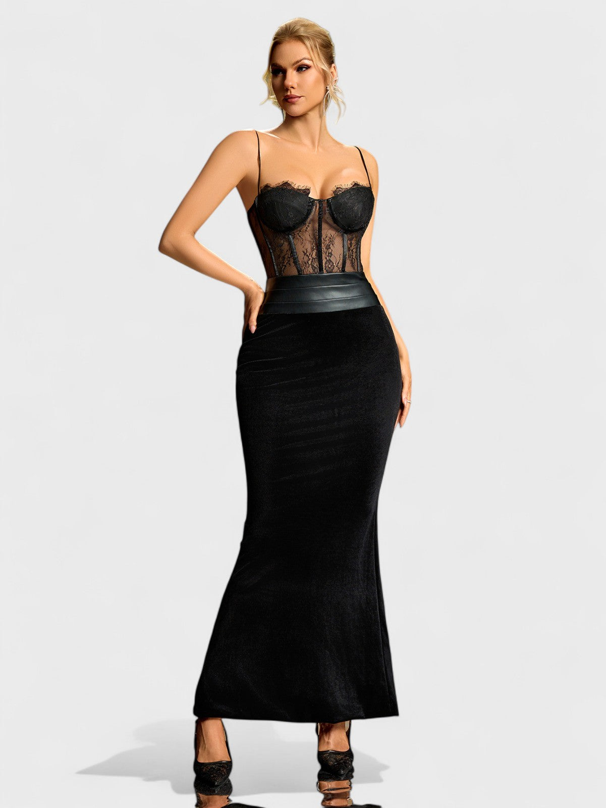 La robe Elena dégage un glamour moderne avec une touche classique. Confectionnée dans un tissu bandage moulant, elle est ornée de strass étincelants qui captent la lumière à chaque mouvement. Dotée d'une encolure carrée et de bretelles épaisses pour la structure, cette silhouette maxi élégante est parfaite pour les soirées formelles et les occasions sophistiquées.