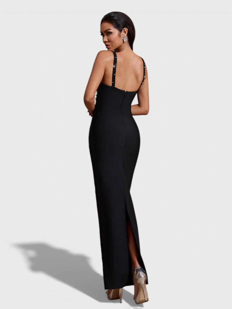 Abito lungo fasciatoio Elena nero con strass