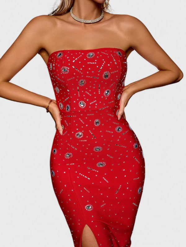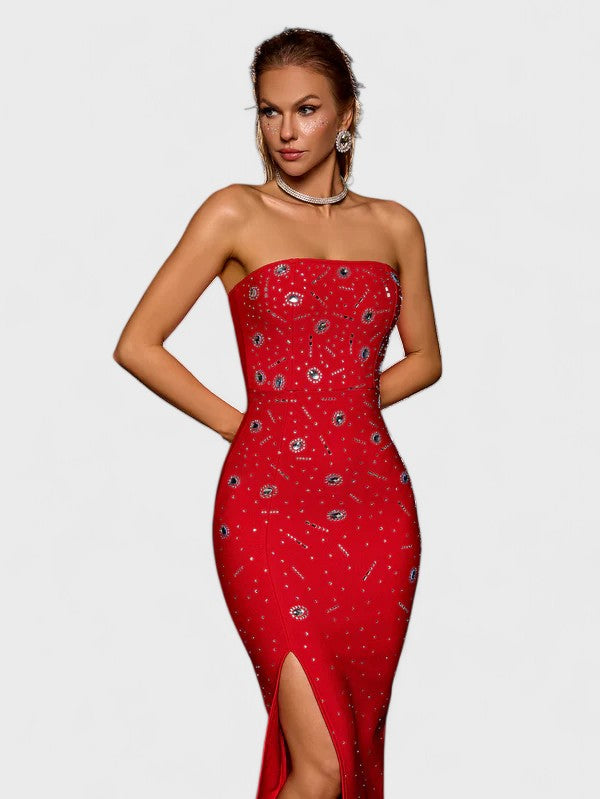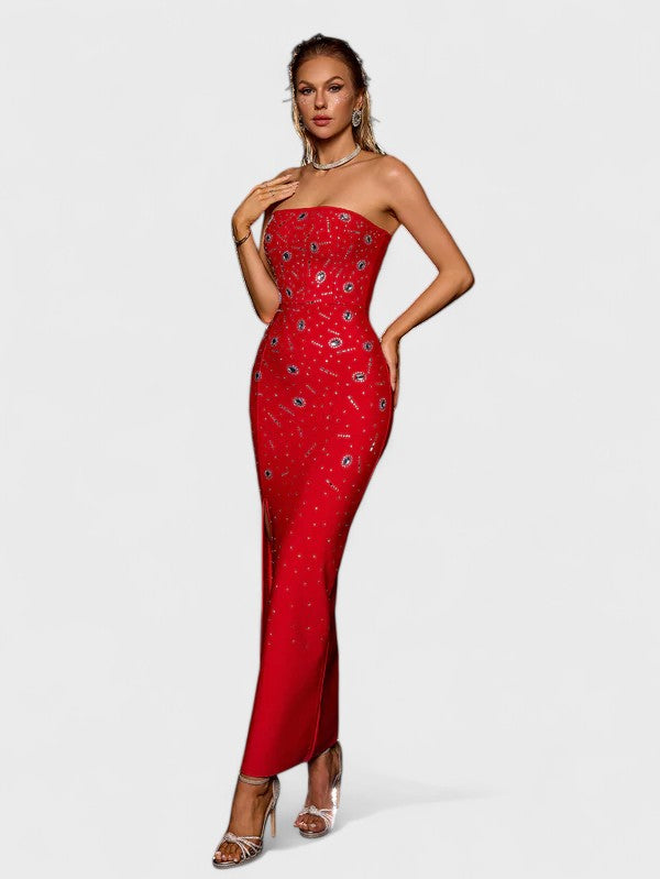 다니카 스트랩리스 밴디지 스카프 맥시 드레스