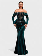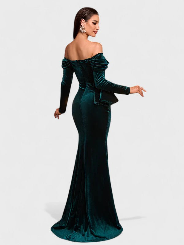Sorina Long Sleeve Off Shoulder Velvet Maxi Dress