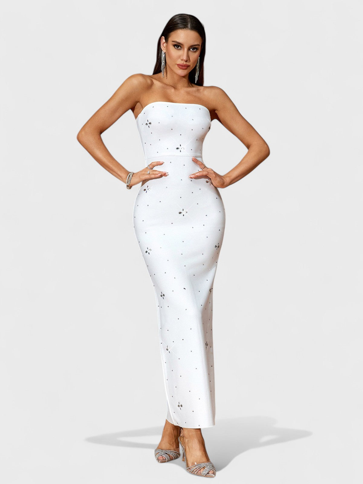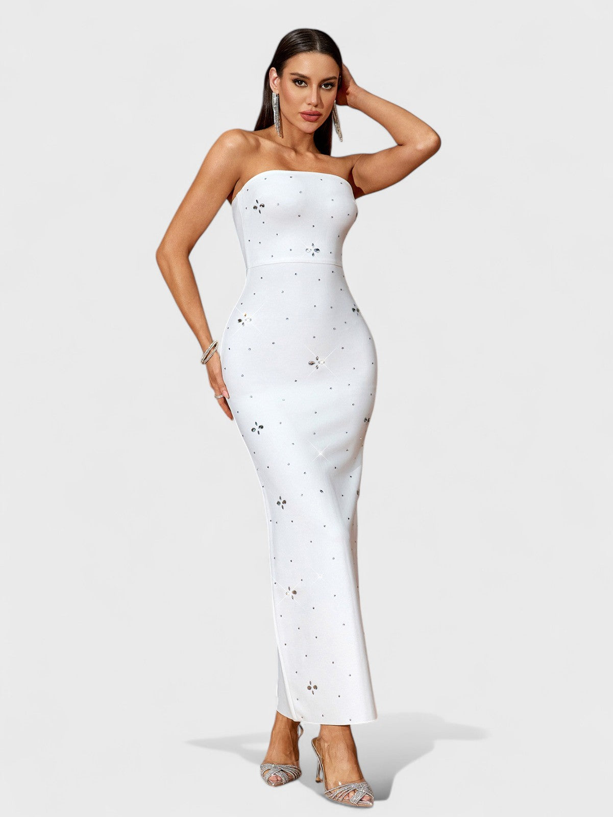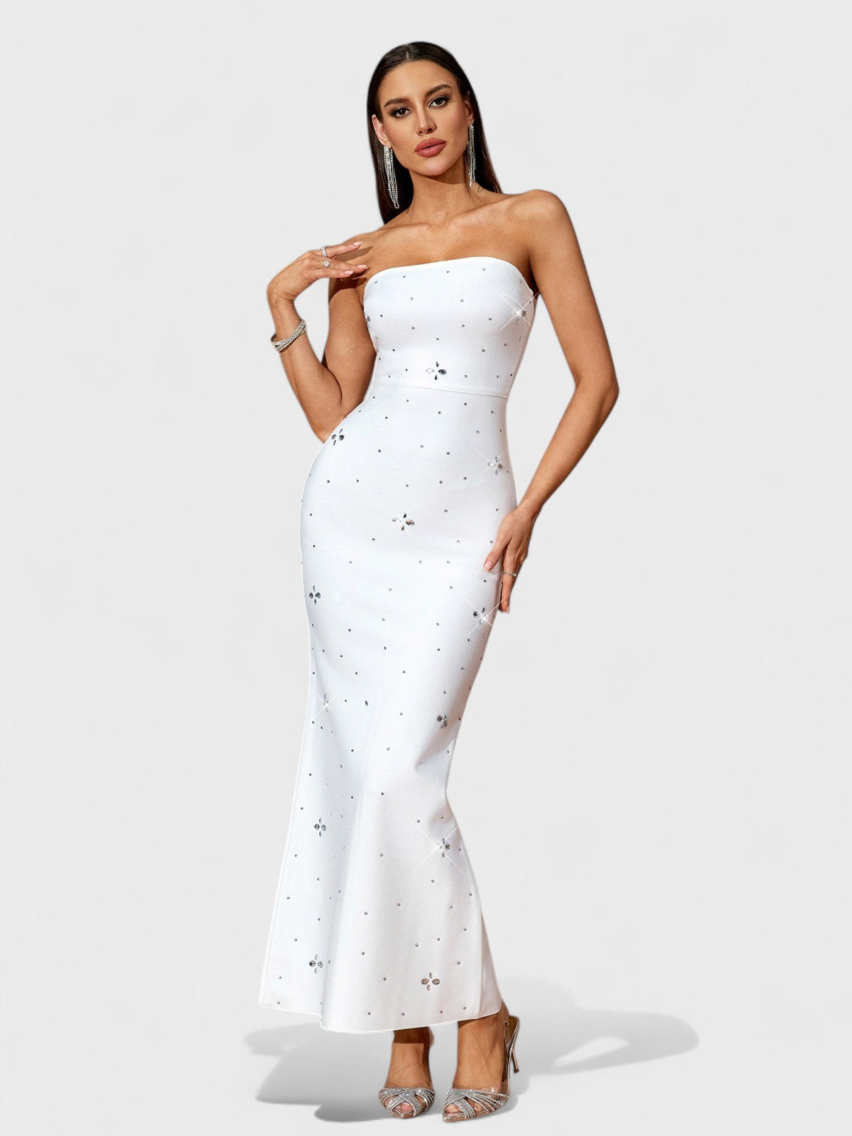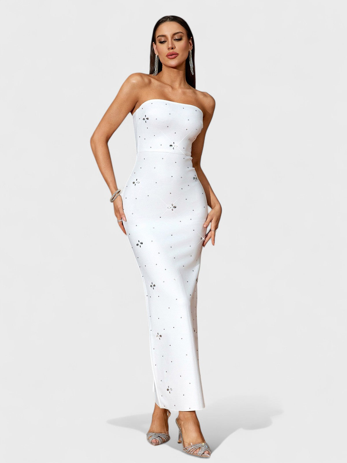 Alina 水钻露肩绑带长裙
